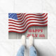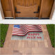Doormat se muestra con un diseño de impresión patriótico de la bandera de Estados Unidos el 4 de julio. Personalizar esta alfombra o compra como está. Imagen de stock freepik.com