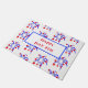 Doormat se muestra con un festivo diseño de la huella patriótica del 4 de julio. Personalizar esta alfombra o compra como está. Imagen de stock