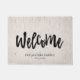 Felpudo rústico impreso para parecer corteza de abedul pálida, con la recepción escrita en escritura negra del cepillo. Personalice con su apellido y el año que establecieron a su familia.