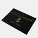 Elegante bienvenida personalizada a bordo de la alfombra que incluye el nombre de su barco o capitán en un texto de oro de moda sobre un fondo negro. Diseñado por Thisisnotme©