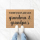 No hay lugar como el doormat de bienvenida personalizado de la abuela y el abuelo que contiene el texto personalizado "No hay lugar como la casa de la abuela y el abuelo". Personalizar el texto para leer cualquier texto.