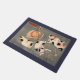 Una estera de puerta para las fans del arte japonés del gato del vintage que ofrece el trabajo del pintor y del fabricante Utagawa Kuniyoshi del ukiyo-e de la impresión. Popular a finales del período de Edo en Japón del siglo XIX, Kuniyoshi amó gatos. Llamado cuatro gatos en diversas actitudes, el ilustracion muestra a cuatro gatos del negro, de la crema y de la mermelada en posiciones felinas típicas. Los juguetes del gato y los cuencos de la comida se dispersan alrededor del piso. El gato regordete del jengibre está rápidamente dormido. Dos están participando en una lucha falsa. Otro, el único que no lleva una bufanda modelada rojo, tiene el suyo de nuevo al espectador que mira en la distancia. ¡Kuniyoshi sabía claramente todos sobre gatos! Usted puede añadir una frontera del color de su opción usando el botón del personalizar. El doormat sería ideal para los amigos y la familia cariñosos felinos, y hace un gran nuevo regalo casero.