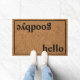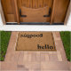 Hola Adiós Familia Personalizado moderna Doormat. Qué lindo país para decir hola y adiós. Personaliza este personalizado rústico burlap look doormat con tu propio texto. Hace un gran regalo de bienvenida.