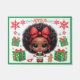 🎄 Adorable Niña Africana Americana Nacida con Navidades Encanto 🎁 personalizado Aburrida niña afroamericana con una encantadora sopa de afro, grandes ojos brillantes y mejillas rosadas. Está vestida con un adorable conjunto de Navidades, con zapatos elefantes y un gran arco de cabello rojo. 🎁 de pie en medio de una escena festiva de copos de nieve rojos, cajas de regalo verdes, una taza de chocolate caliente y un chica de pan de jengibre, texto (Joyous) en la parte superior del diseño, todo envuelto en un fondo blanco prístino.