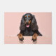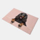 The soft blush pink background adds a sophisticated and modern touch, making it perfect for stylish home decor. With extra space at the top and bottom, this design is ideal for personalization—add names, welcome text, or custom messages to create a unique and elegant dog-themed doormat or gift.