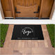 Logotipo minimalista simple en una alfombrilla negra para la entrada de tu negocio desde el vestíbulo o el exterior. Reemplaza este logotipo con el tuyo y agrega el nombre de tu empresa debajo.