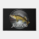 Un lucio de walleye es superpuesto sobre una luna que se levanta sobre un lago.