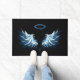 Felpudo Alas del Ángel Azul brillante sobre fondo negro