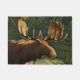 Esto al aire libre - el doormat del tema de la naturaleza representa un alce del toro con un estante de la clase del trofeo de astas en un ajuste del arbolado. El alce es el ciervo más grande de Norteamérica.
