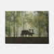 Un ilustracion de una silueta de los alces/de los alces con las astas en el gráfico de vector del bosque. En verdes y marrones del grunge. Caza y diseño de la imagen de los cazadores. Paisaje salvaje de la vida.