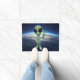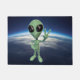 Diseño humorístico de alienígena verde que señala la señal V de la paz: ¡paz mundial, paz global, paz en todo el universo! La gente sonríe cuando ve esta imagen.