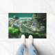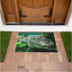 Esta alfombra de la puerta tiene un caimán retratado en ella.