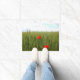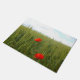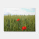 Amapolas rojas vibrantes entre los oídos verdes jovenes del trigo que crecen en la Dordoña, Francia