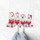Charming and intelligent American Eskimo Dogs, with their snowy white coats, look bright and festive in their Christmas Santa outfits! A delightful design perfect for Eskie owners and spitz breed fans.