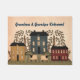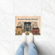 Colorida alfombra de puertas estilo arte folclórico Americana, con gráficos primitivos de un entorno rural. El texto azul, en la parte superior de la alfombra, está listo para personalizar para usted o como una gran idea de regalo. Qué manera tan agradable de dar la bienvenida a sus huéspedes a su casa.