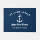 Nautical Navy Blue Welcome Aboard Ship Name Anchor Door Mat The Nautical Welcome Aboard Boat Mat está diseñado en un diseño costero sencillo, elegante, azul marino y blanco con acentos de ancla. Personalice el texto del personalizado con el nombre del barco y su ubicación, ciudad y estado. Un gran regalo con temática náutica para los propietarios de los barcos.