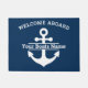 Con este Personalizado Nautical Boat Name Doormat, se puede navegar con estilo, con un diseño de ancla azul marino y blanco audaz y el mensaje de bienvenida "Welcome Aboard". Personalízalo con el nombre de su barco para un elegante toque náutico a su entrada. Este porche es perfecto para su cubierta de barco, casa de playa o puerta delantera, añadiendo tanto encanto como funcionalidad a su decoración de temática náutica.