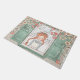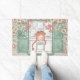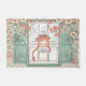 Esta alfombra de puertas de Anne of Green Gables presenta a nuestra amada Anne mirando por una ventana con persianas verdes. Los colores son: verde salvia, azul pálido, naranja, rosa y blanco.