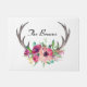 Rústicos cánticos de ciervos adornados con flores de colores en púrpura, magenta y rosa. Edite el nombre con su propio nombre familiar u otro texto. También puede cambiar el color del fondo blanco eligiendo "personalizar" y seleccionando un fondo diferente.