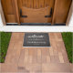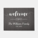 Felpudo con un falso fondo de madera, una fuente blanca bonita de la caligrafía, y su apellido y año establecidos.