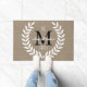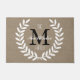 ¡Falso fondo magnífico y rústico de la arpillera con el marco blanco del laurel del trigo y el doormat personalizado del texto del apellido! ¡Este doormat parecería fabuloso en su umbral! ¡Dé como regalo a los recienes casados!