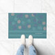 Añada elegancia clásica moderna a su decoración de casa con este felpudo personalizado azul. El Mat presenta un diseño elegante de círculos azul claro y marrón y rayas azules y verde azuladas. El apellido o el monograma de su familia completan el aspecto. Esta alfombra de puerta también haría una hermosa y personalizada ducha de novia, boda, cumpleaños, Navidades u otro regalo de vacaciones.