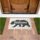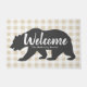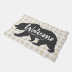 Doormat grande gris de la silueta del oso con la palabra "recepción" en el texto blanco así como el su apellido. El fondo es tela escocesa y de color topo blancos. Añada cierto estilo y diversión a su entrada con este doormat intrépido rústico.