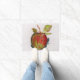 ¡Un dibujo a lápiz de color de una manzana roja y verde adorna este felpudo!