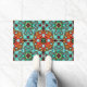 Felpudo Aqua Turquoise Blue Naranja Red Brown Tribe Art