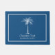 Añada un toque especial a este diseño elegante y sencillo que incluye el nombre o la frase de su familia y la fecha establecida en texto blanco y palmera enmarcada en un borde blanco sobre un fondo azul clásico.