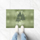 Este diseño de alfombras de puerta presenta un hermoso arreglo de estilizados árboles de Navidad y copos de nieve en verde oscuro sobre un fondo verde musgo de efecto texturado. Se ha proporcionado texto opcional de 'Felices Fiestas' y una plantilla para agregar tu nombre y/u otro texto. Busque ID861 a ID864 para ver opciones de color adicionales y otros productos en este moderno conjunto de diseño de Navidades.