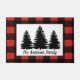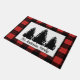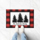 Silhouette de árboles rústicos negros de bosque negro y búfalo blanco chequean el doormat de plaid. ¡Esta alfombra puede ser personalizada con el nombre de su familia!