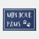 Estera de puerta azul y blanca de la marina con limpie sus patas escritas en una tipografía peculiar con un par de huellas de pata, una adornada con un corazón azul.