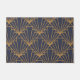 Este doormat tiene diseño art deco de diamantes y triángulos en oro sobre un campo de azul.