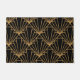 Este doormat tiene un diseño Art Decó de diamantes y triángulos en oro sobre un campo de negro.