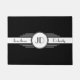 Doormat del art déco del monograma con las iniciales enmarcadas en un círculo blanco con la frontera negra. El monograma se flanquea cerca primero y los apellidos y adorno rayado.