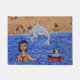 Felpudo Arte Popular Lady Cat Beach Dolphin Swimming