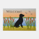Doormat de caza de aves negro de Labrador para los que aman a los labradores como raza de perro de aves. Hermoso Diseño de Silhouette de Labrador Negro como perro de caza a la vista del atardecer. Creado por Naomi Ochiai. Puede personalizar el texto.