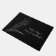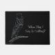 Lechuza de clase en un sombrero superior. - Lechuzas divertidas saludan al distinguido mayordomo Decor Mat. Preparado para dar un saludo a sus huéspedes con un saludo de bienvenida. El Lechuza es un pájaro muy sabio. Diseño en blanco y negro que se puede personalizar. texto, color, estilo de la alfombra del mayordomo de ave lechera