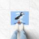 Ave marina de Aluminio Atlántico, con su plumaje blanco y negro típico y su pico de colores vivos, sobre una roca, en el océano. Ilustracion vectorial original Copyright BluedarkArt TheChameleonArt.
