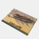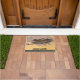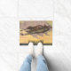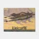 Fácil de personalizar esta alfombra de bienvenida con el texto de su personalizado! Viaje de ciencia ficción de ilustracion de época y diseño de transporte con una gran aeronave que sobrevolaba el océano con otros aviones en el cielo. Este hidroavión parece un gran crucero futurista o un barco con alas. Un clásico de los años 50: el diseño de ciencia ficción de historietas retro del futuro.