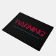 Doormat de advertencia con un diseño inspirado en los años 80.