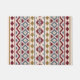 Un diseño de estilo azteca en un patrón digital y vectorial con detalles en rojo, azul y oro en un fondo de color crema. V = Patrón de ajuste vertical.
