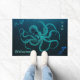 Deep Ocean Blue con pulpo y 2 escuelas de felinos con iniciales y la palabra Bienvenidos. Puede personalizar ambos haciendo clic en el área de personalización. Cambia las iniciales y la palabra bienvenido o si quitas lo que hay y lo dejas en blanco, ambos desaparecerán. Un bonito felpudo donde vivas.