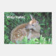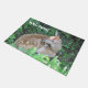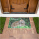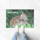 Esta alfombra de bienvenida contiene un venado bebé esperando a su madre en el bosque de Connecticut.