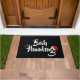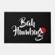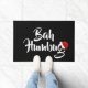 La estera de la puerta se muestra en blanco y negro con un sombrero de Santa y Bah Humbug de vacaciones. Se muestra una alfombra más grande aquí. Personalizar esta alfombra o compra como está.
