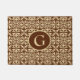 Patrón de baldosas inspirado en Marruecos, marrón chocolate profundo con fondo beige claro, estera de puerta con monograma