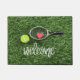 Felpudo Balón de tenis y raqueta en la bienvenida verde