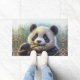 Pintura de lindos pandas jóvenes comiendo brotes de bambú verde