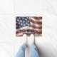 Un doormat de encargo con una imagen de un vintage, de una bandera americana resistida en rojo, de un blanco y de un azul que usted puede personalizar con su nombre o texto.